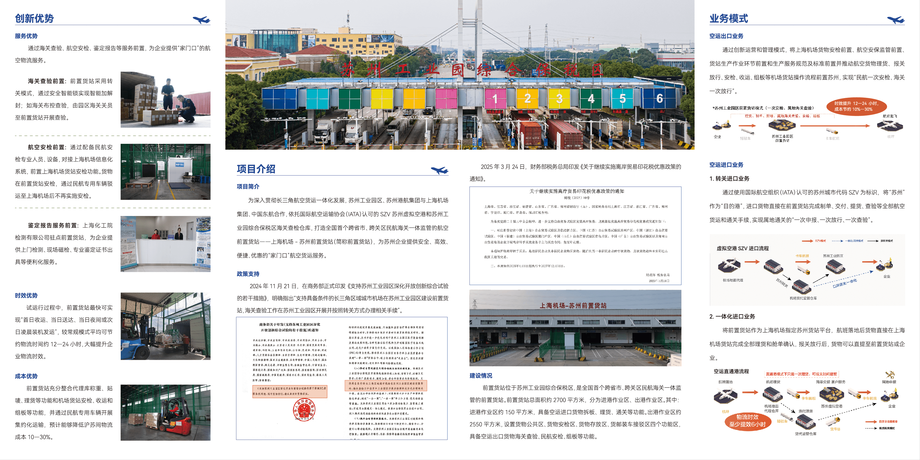 沐浴著四月的春風(fēng),蘇州工業(yè)園區(qū)以改革促開(kāi)放,再度落地重磅創(chuàng)新舉措。4月7日,全國(guó)首個(gè)跨省市、跨關(guān)區(qū)航空前置貨站上海機(jī)場(chǎng)—蘇州前置貨站啟用,意味著蘇州企業(yè)可以在“家門(mén)口”享受到上海豐富的國(guó)際航線資源,也為園區(qū)進(jìn)一步優(yōu)化營(yíng)商環(huán)境寫(xiě)下“新釋義”。 空運(yùn)通道“再升級(jí)” 作為蘇州開(kāi)放創(chuàng)新、產(chǎn)業(yè)創(chuàng)新、科技創(chuàng)新的前沿高地,園區(qū)企業(yè)在電子信息、高端裝備、生物醫(yī)藥、新材料等領(lǐng)域的國(guó)際航空貨運(yùn)需求十分旺盛。一直以來(lái),園區(qū)積極探索、先行先試,推出虛擬空港(SZV)、“空運(yùn)直通港”、蘇州航空貨運(yùn)中心等創(chuàng)新模式,有效保障外貿(mào)物流鏈供應(yīng)鏈的順暢穩(wěn)定。 2024年,園區(qū)迎來(lái)開(kāi)發(fā)建設(shè)30周年,國(guó)家出臺(tái)支持園區(qū)深化開(kāi)放創(chuàng)新綜...