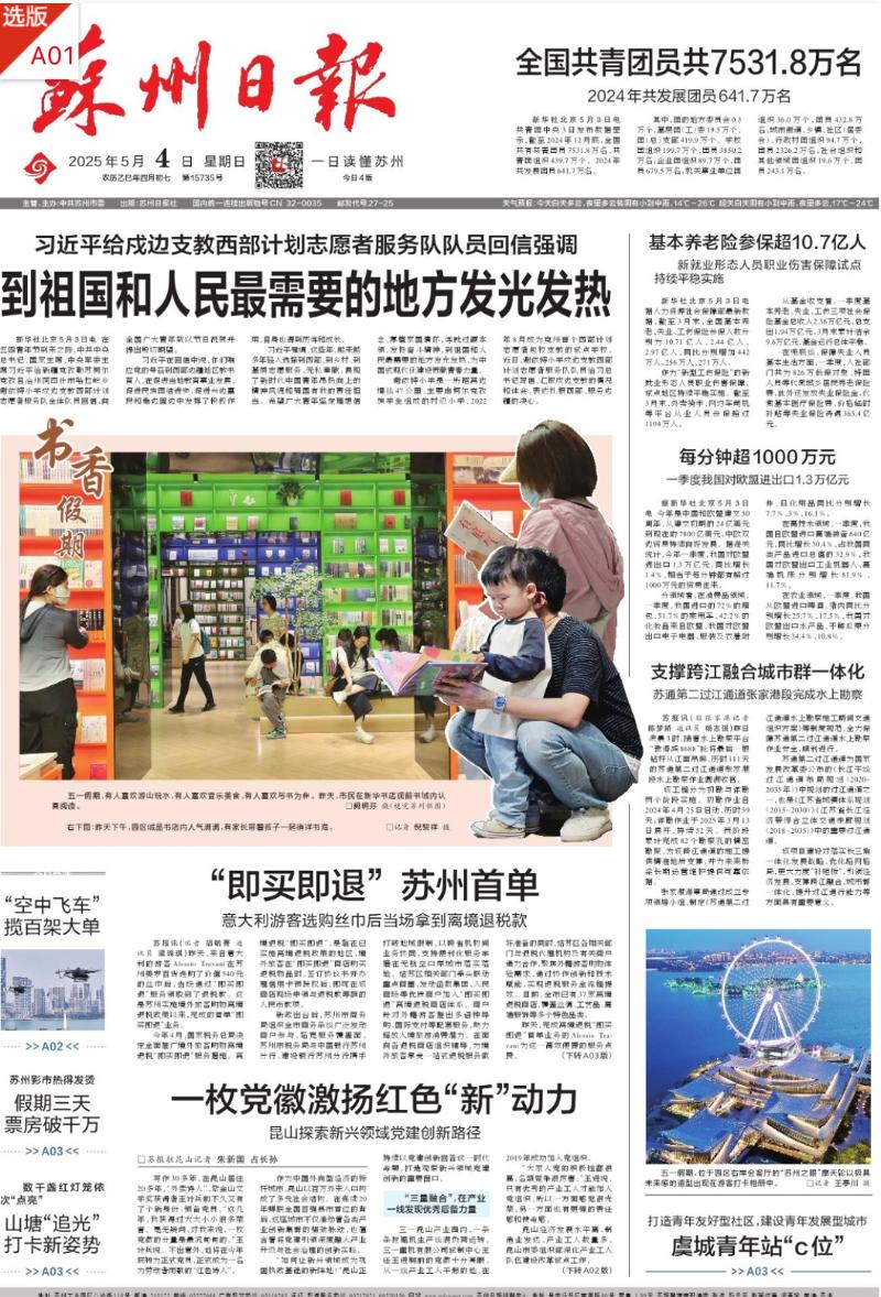五一假期,有人喜歡游山玩水,有人喜歡音樂美食,有人喜歡與書為伴。昨天,市民在新華書店觀前書城內(nèi)認真閱讀。 闕明芬攝(視覺蘇州供圖)