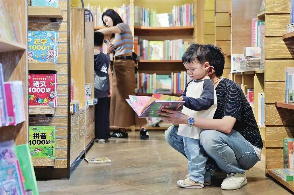 昨天下午,園區(qū)誠品書店內(nèi)人氣滿滿,有家長帶著孩子一起徜徉書海。 記者 倪黎祥攝