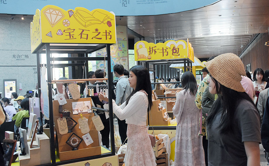 有人將“守護古籍,讓文字活起來”作為畢生的追求,也有人通過閱讀,將傳統文化之美內化為靈感乍現,開啟璀璨的創新之旅。中式飾品品牌“青沅”主理人李晴媛正是一位愛閱讀的設計師。“寶石之書”展位前,她正向市民呈現珠飾與文學交融的美學空間。“在這座文化名城、書香之城,飾品已經不僅僅是一種裝飾,更是一種文化和意境的呈現。”李晴媛表示,即便同一種寶石,因顏色、大小、搭配的不同,也能展現各具特色的韻味,而她希望自己的設計能把傳統文化之美用現代的方式傳遞出去。活動現場,她推出了命運寶石盲抽活動,愛閱之人盲抽一顆水晶石,根據顏色說出對應類型的書名,即可獲得天然水晶戒指一枚。創意的玩法引得市民游客紛紛投入與命運寶石的“雙向奔赴”。