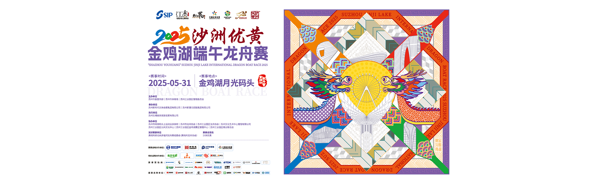 5月31日,“沙洲優黃”2025第十五屆金雞湖端午龍舟賽在蘇州金雞湖畔月光碼頭鳴鑼開賽。賽事由蘇州市委宣傳部、蘇州市體育局、蘇州工業園區管理委員會主辦,蘇州新時代文體會展集團有限公司、蘇州新建元控股集團有限公司承辦。