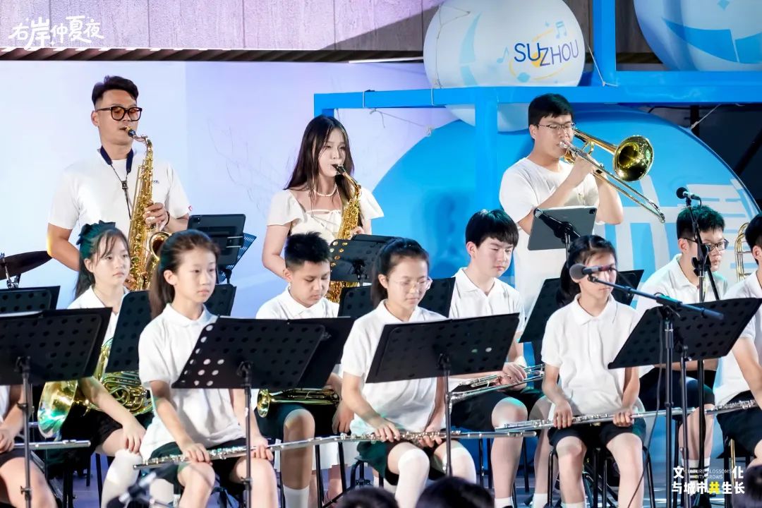 聚光燈下,蘇州工業(yè)園區(qū)青少年交響樂團(tuán)、蘇州工業(yè)園區(qū)青少年交響樂團(tuán)教師樂隊(duì)、圓融·花季青少年藝術(shù)團(tuán)、小白帆合唱團(tuán)多支優(yōu)秀青少年藝術(shù)團(tuán)體聯(lián)袂獻(xiàn)藝,“小小演奏家”們以純粹的熱愛與專業(yè)的演繹,為市民游客帶來了一場酣暢淋漓的夏夜音樂體驗(yàn)。
