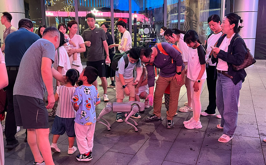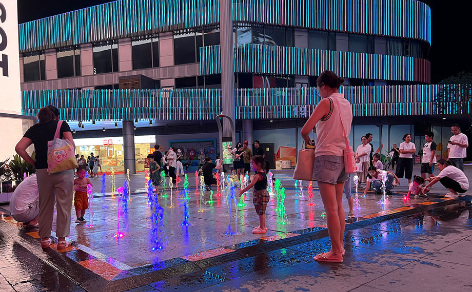 天幕下,變幻著燈光的地面噴泉讓愛玩水的萌娃樂此不疲,而臨近的水岸音樂會甄選市集上,哪吒造型的機器人、身姿靈活的機器狗也與大家握握手、跳個舞熱情互動,讓往來的大朋友、小朋友心動不已。“水岸音樂會積聚人氣,實現(xiàn)了很好的引流,不僅提升了市民的生活質(zhì)感,也為我們企業(yè)推廣搭建了全新的場景。機器人正當熱點,我們與圓融合作,在圓融天幕和月光碼頭都設置了展臺,提供機器人的表演、互動,以及配套小機器人的售賣,對于展示企業(yè)形象、能力,展現(xiàn)園區(qū)高科技活力,都是很好的平臺。”八方機器人經(jīng)理朱錦介紹說。