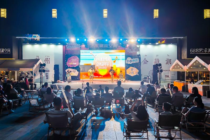 位于688藝術(shù)潮流空間的晚風(fēng)音樂會,則展現(xiàn)了音樂活動的另一面。這里融合了“日咖夜酒”的現(xiàn)代休閑理念,民謠歌手的深情演唱與金雞湖的璀璨夜景相得益彰。觀眾圍坐于下沉廣場,在微醺的晚風(fēng)中聆聽,時(shí)而安靜沉醉,時(shí)而報(bào)以熱烈掌聲。
