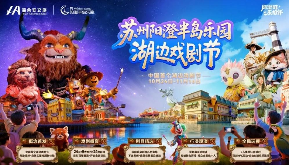 當秋日風光與戲劇藝術浪漫邂逅,一場顛覆傳統的藝術盛宴正蓄勢待發。作為園區“金秋·三湖嘉年華”的重要活動之一,10月24日至11月16日,蘇州陽澄半島樂園將創新打造中國首個湖邊戲劇節,以陽澄湖的天然生態為舞臺,實現“戲在湖畔,人在劇中”的沉浸式體驗,為市民游客呈現一場為期24天的全民藝術狂歡。