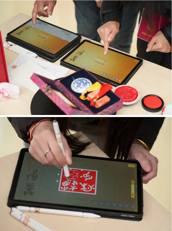 現(xiàn)場(chǎng)洋溢著幸福與儀式感,下午1點(diǎn)活動(dòng)開(kāi)始后,前10對(duì)完成婚姻登記的新人如約獲贈(zèng)數(shù)字篆刻專(zhuān)屬印章印章由“印記園區(qū)印向未來(lái)”蘇州工業(yè)園區(qū)大眾篆刻作品展特別定制,將新人姓名以傳統(tǒng)篆刻藝術(shù)數(shù)字化呈現(xiàn),可永久保存、隨時(shí)調(diào)用。一枚印章,既是愛(ài)情的信物,也是新年最獨(dú)特的紀(jì)念。
