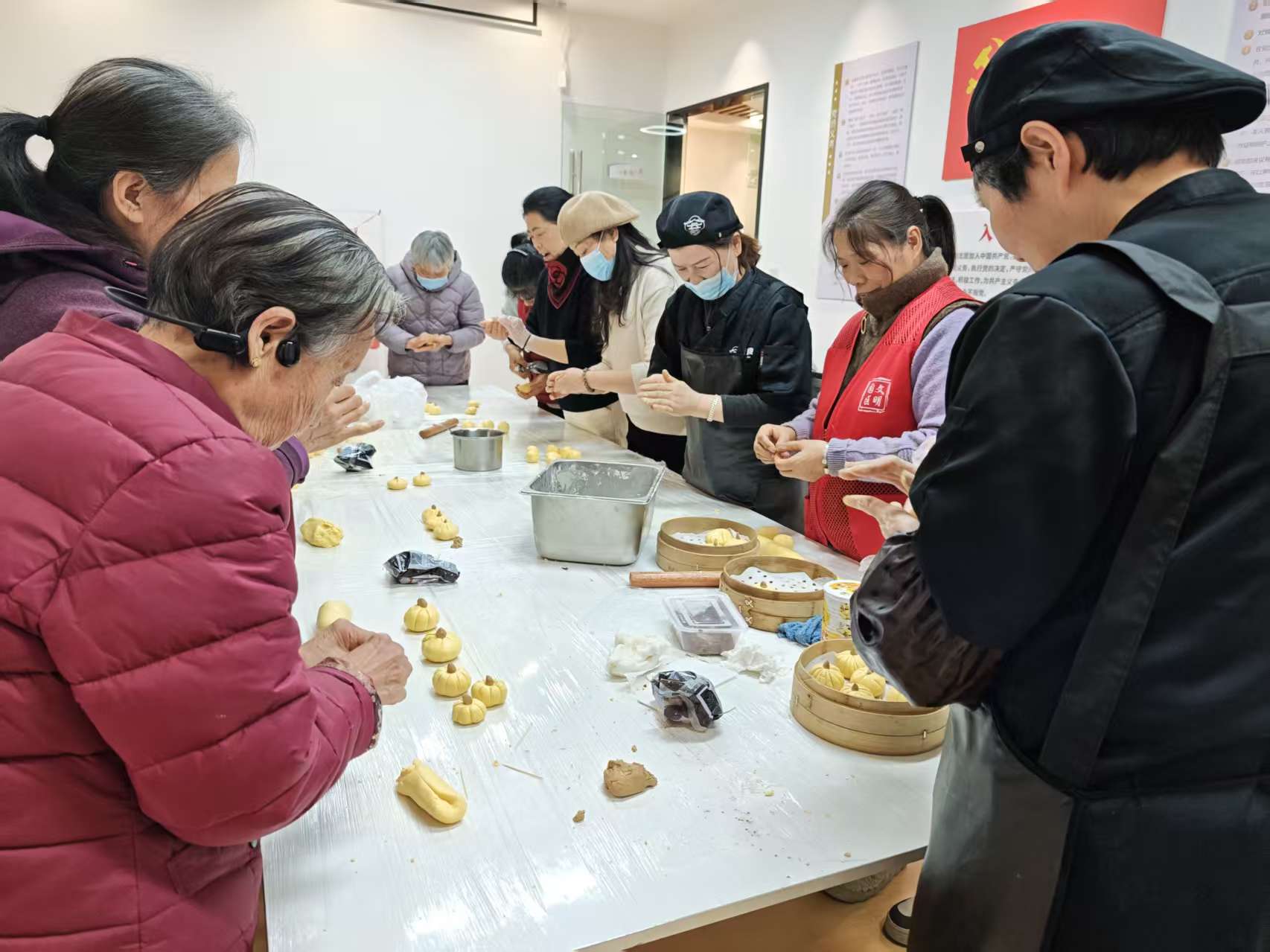 為增加轄區(qū)居民的文化生活,進(jìn)一步增進(jìn)鄰里情感交流,文薈苑社區(qū)開展“以食暖冬,以味連心”美食制作活動(dòng),品南瓜之香,享動(dòng)手之樂。活動(dòng)伊始,長(zhǎng)桌便化身成為溫馨的“社區(qū)廚房”。金燦燦的南瓜泥、雪白的糯米粉、香甜的豆沙餡料一應(yīng)俱全。在美食達(dá)人的帶領(lǐng)下,大家揉面、分團(tuán)、捏窩、包餡、收口……步驟看似簡(jiǎn)單,卻處處是手藝的考驗(yàn)。大家互相切磋著“不粘手”的秘訣,分享著家鄉(xiāng)的不同做法,在鍋碗瓢盆的輕聲碰撞與陣陣歡聲笑語(yǔ)中,鄰里情誼如同這手中的面團(tuán),愈發(fā)緊密而柔韌。
