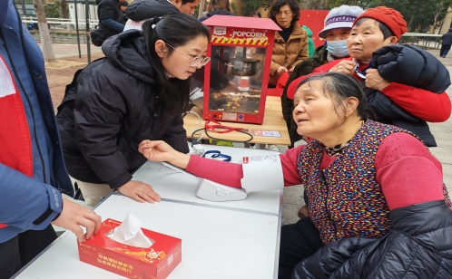 便民服務(wù)專區(qū)內(nèi),磨刀、縫補(bǔ)等貼心服務(wù)切實(shí)解決了居民的日常難題。磨刀師傅手藝嫻熟,砂輪飛速轉(zhuǎn)動(dòng),一把把鈍舊的菜刀、剪刀在打磨下重?zé)ㄤh利;縫紉師傅穿針引線,細(xì)致地為居民縫補(bǔ)衣物、修改褲腳,用巧手彌補(bǔ)衣物瑕疵,贏得居民連連稱贊。除此之外,常熟銀行工作人員搭建起服務(wù)攤位,熱氣騰騰的爆米花香氣四溢,旁邊的糖葫蘆攤子更是點(diǎn)睛之筆,紅彤彤的山楂裹著晶瑩的糖衣,酸甜誘人,引得老人孩子頻頻駐足,香甜的口感驅(qū)散了冬日的寒意;同時(shí),工作人員還免費(fèi)為居民測(cè)量血壓、血糖,細(xì)致詢問(wèn)身體狀況,耐心講解冬季養(yǎng)生、慢病管理等健康知識(shí),用專業(yè)服務(wù)為居民的健康保駕護(hù)航,將金融溫度傳遞到每一位居民心中。