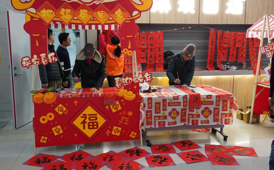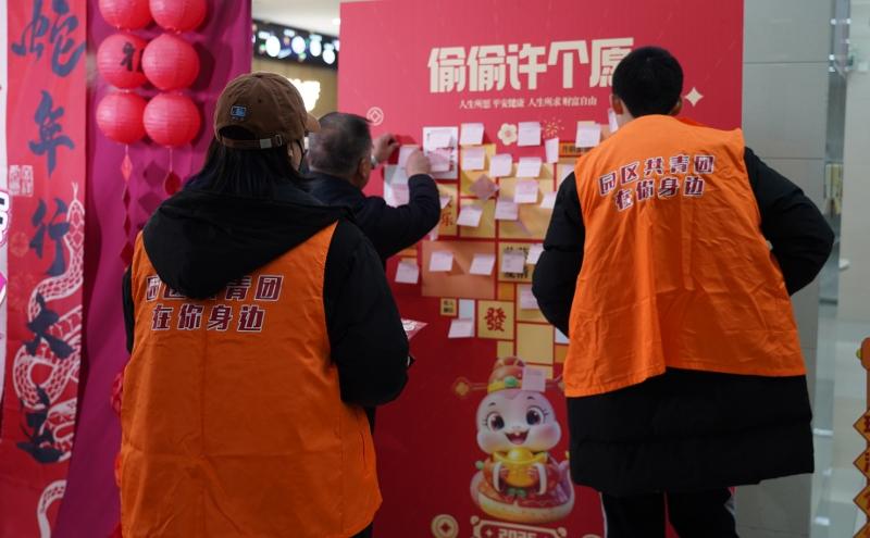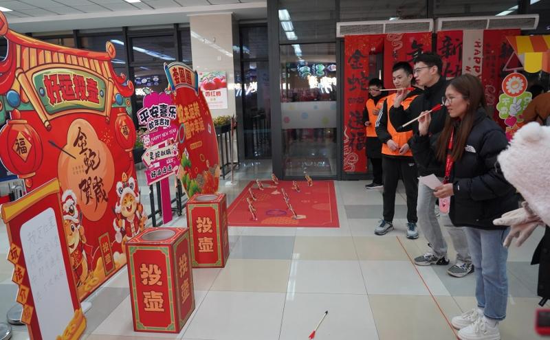 活動現(xiàn)場,團(tuán)工委還為留蘇青年們準(zhǔn)備了豐富多彩的暖心市集,現(xiàn)場歡聲笑語不斷。糖葫蘆、海棠糕、赤豆圓子……各類蘇式美食香氣四溢,投壺、套圈傳統(tǒng)游戲則吸引了眾多青年參與。在文化體驗(yàn)區(qū),青年們在非遺老師的指導(dǎo)下,親手拓印新春“福”字,學(xué)習(xí)傳統(tǒng)技藝,感受江南文化的獨(dú)特魅力;新年祈福墻前,大家紛紛拿起筆,在許愿牌上寫下對新一年的美好期許;而新春全家福區(qū)域則為青年們定格下了這難得的團(tuán)聚時(shí)刻,留下珍貴的回憶。員工舒女士表示:“這次活動很熱鬧、很暖心,雖然沒有回家,但在蘇州也能過一個有溫度、有年味的春節(jié)。”
