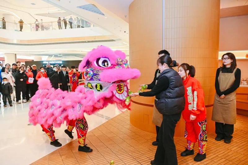 一群憨態可掬的小獅子在梅花樁上輕盈跳躍,時而翻滾,時而嬉戲,還俏皮地從口中“吐”出春聯,為市民游客送上滿滿的新春祝福。這場精彩絕倫的龍獅表演,贏得了現場觀眾的陣陣掌聲,整個商場洋溢著喜慶。