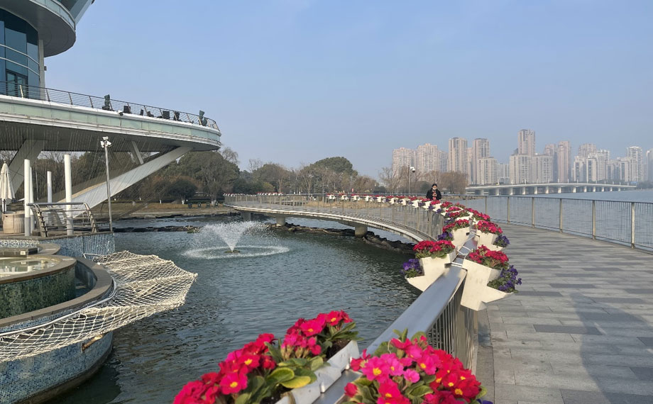 在蘇州大道(現代大道-月廊街)、金雞湖人行棧橋、金雞湖大橋及飛翔雕塑等重要窗口區域,三千多組馬鞍式花箱煥新亮相。