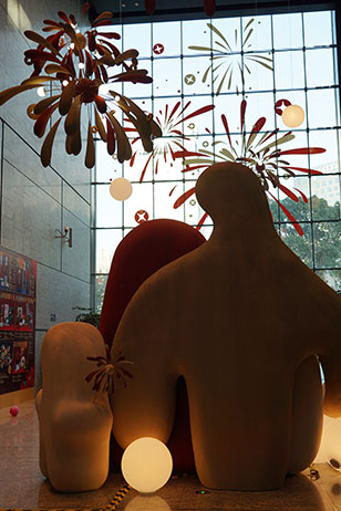 在誠品書店北門,新春抱抱溫暖上線,新年煙花在上空絢爛綻放,為寒冷的冬日增添了一抹溫馨的色彩。巨大的抱抱玩偶矗立在書店的入口,張開著雙臂,仿佛在邀請每一位路過的行人前來擁抱,感受這份來自新春的溫暖與祝福。