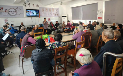 在蓮香社區(qū)的日間照料中心,經(jīng)典劇目《梁祝》《牡丹亭》等輪番上演,雖然沒有精致的服裝和妝造,但“民星”們精湛的表演和悠揚的唱腔還是贏得了居民們的陣陣掌聲。完全由社區(qū)居民自發(fā)成立的蓮聲戲曲社,在新的一年中隊伍更加壯大,目前固定社員已有12人,每個人在吹、拉、彈、唱上都有自己的專長。每周二下午的日照中心活動室里總是人頭攢動,社區(qū)的戲迷們更是早早地來到了活動室,就為了搶到靠前的位置。“現(xiàn)在每周二,我雷打不動地過來聽?wèi)颍?/font>在家門口看大家的表演,真是過足了戲癮!”社區(qū)居民李奶奶興奮地說道。社區(qū)常態(tài)化開展豐富多彩的文化活動,不僅讓居民感受到了文化的魅力,也進一步拉近了鄰里之間的距離,讓居民“家門口”的文化大餐觸手可及。