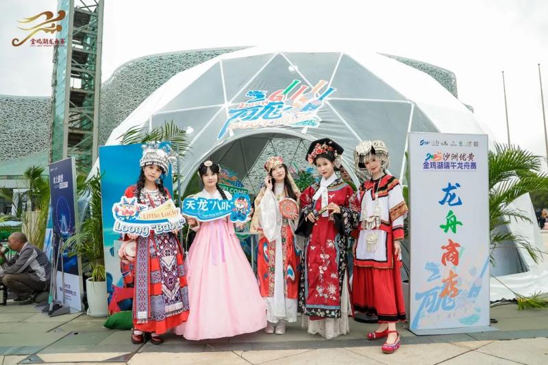 “金雞湖端午龍舟賽辦得越來越好了。除了可以看比賽,現(xiàn)場還有非遺、美食、表演等等,應(yīng)有盡有?!痹缟喜坏桨它c,周女士一家三口就出現(xiàn)在了月光碼頭?!坝幸粓龃蜻B廂的演出印象尤其深刻。大家穿著傳統(tǒng)服飾、民族服飾、旗袍一起參與,很有活力,也特別有節(jié)日氛圍?!?/p>