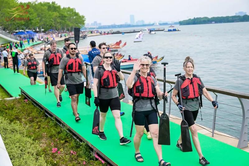 作為蘇州國際化程度最高的區(qū)域,園區(qū)開放、包容的發(fā)展基因在龍舟賽中體現(xiàn)得淋漓盡致。據(jù)悉,本屆賽事共吸引7支外籍隊伍參加,隊員則來自加拿大、瑞士、德國、俄羅斯、法國、美國、意大利、西班牙等13個國家和地區(qū)。以龍舟為媒,園區(qū)正用鏗鏘鼓點搭建起國際對話的新橋梁。