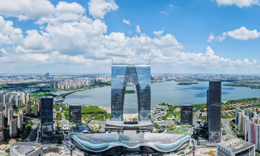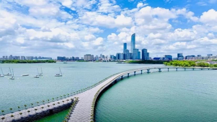 作為水鄉(xiāng)上崛起的現(xiàn)代化新城,園區(qū)河流縱橫、水網(wǎng)密集,擁有金雞湖、獨(dú)墅湖、陽(yáng)澄湖等骨干河流,湖面與周邊錯(cuò)落的生態(tài)景觀帶相映成趣,勾勒出了一幅“人水和諧”的生態(tài)畫(huà)卷。