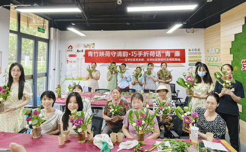 為進(jìn)一步弘揚廉潔文化,營造風(fēng)清氣正的社區(qū)氛圍,近日,文華社區(qū)組織轄區(qū)青年居民開展了“青竹映荷守清韻,巧手折荷話‘青’廉”主題插花活動。在園藝?yán)蠋煹闹笇?dǎo)下,大家以竹為器、以荷為材,學(xué)習(xí)荷花的多種折法,以荷寄情,暢談對廉潔寓意的理解,不一會兒,一件件融合了“竹之節(jié)”與“荷之潔”的插花作品便呈現(xiàn)在眼前,既有自然之美,又傳遞出了廉潔自律的價值追求。以竹喻廉、以荷喻潔,活動不僅提升了青年的審美與動手能力,更讓廉潔理念以生動可感的方式深入人心,讓廉潔文化從“文字”走向“生活”,從“說教”變?yōu)椤肮睬椤保瑸樯鐓^(qū)精神文明建設(shè)注入了清新活力。