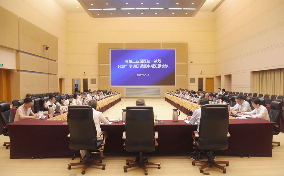 9月3日下午,蘇州工業(yè)園區(qū)統(tǒng)一戰(zhàn)線2025年度調(diào)研課題中期匯報會召開。會議通報園區(qū)上半年經(jīng)濟社會發(fā)展情況,搭建面對面交流平臺,助推各民主黨派、統(tǒng)戰(zhàn)團體深入調(diào)研、精準議政,為共同推進園區(qū)高質(zhì)量發(fā)展貢獻更多統(tǒng)戰(zhàn)智慧。