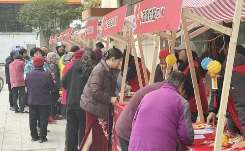 與室內(nèi)戲曲的靜雅相呼應,戶外廣場上的元旦主題文化市集則是一片熱鬧歡騰的景象。市集緊扣“團圓、祈福、迎新”主題,設置了多個兼具文化韻味與互動趣味的攤位。“元旦福運剪紙坊”和“團圓燈籠DIY攤”前,居民們親手剪出福字窗花、制作紅火燈籠,將新年祝福融入手工作品;“吉祥香囊手作”攤飄散著淡淡藥草香,寄托著人們對健康平安的祈愿;“傳統(tǒng)冰糖葫蘆鋪”與“暖心湯圓驛站”更是人氣十足,酸甜的冰糖葫蘆勾起童年記憶,一碗碗熱騰騰的免費湯圓,溫暖了居民特別是老年人與外賣員、保潔員等新業(yè)態(tài)從業(yè)者的胃,更溫暖了他們的心。“元旦猜謎互動攤”則傳來陣陣歡聲笑語,居民在趣味競猜中增長了傳統(tǒng)文化知識。各攤位內(nèi)外聯(lián)動,共同構(gòu)成了一個充滿煙火氣與人情味的節(jié)慶空間。
