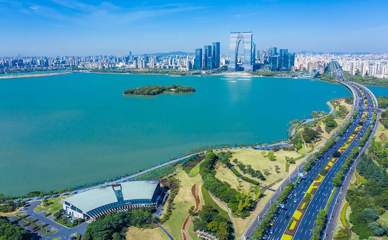 聚焦綠色發展,園區全面推廣綠色建筑,并積極推動既有建筑的節能改造和低碳管理。中新綠色數碼港將通過環保材料投入、能源循環利用、智慧化管理等方式,形成載體在區域的凈零碳示范。此外,園區還積極構建綠色高效的交通體系。目前園區公交100%使用新能源汽車,并建成多種類型的換乘樞紐,大大方便市民游客綠色出行。