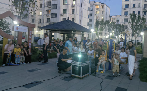 為豐富居民的業余文化生活,社區黨委在組團中心廣場新設露天電影移動放映點位。該點位巧妙融合固定式與移動式設計,可根據不同活動需求靈活調配,為居民定期放映經典影片。一場場兼具教育意義與觀賞價值的影片走進社區廣場,以光影為“情感紐帶”連接鄰里。每到放映日,社區工作人員與志愿者便早早來到廣場,拉起遮光幕布、調試音響設備,有不少居民帶著孩子、拎著小凳子趕來占座。近三個小時的放映中,掌聲與笑聲此起彼伏,居民們全身心沉浸于電影編織的世界里。