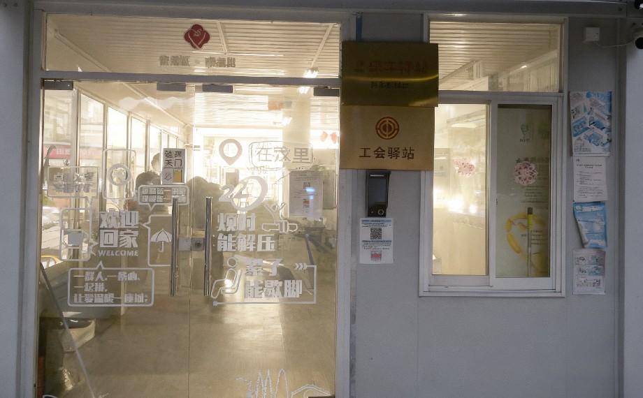 “2024年建成投用的工會驛站聯豐廣場站,就為騎手、小哥提供了專屬空間。驛站位于聯豐廣場入口,面積約40平米,周邊有停車區域,方便小哥隨時停靠休息?!毙碧两值揽偣ぷ魅藛T介紹,驛站雖然面積有限,但是按照標準化配置,空調、冰箱、微波爐、飲水機、充電設備、急救藥箱等一應俱全,有效保障小哥們基本需求?!按送?,我們持續完善功能配置,聯合肯德基打造’食物銀行’,定期提供免費余量餐食。驛站還設置解壓角,通過解壓玩具和圖書,讓小哥們在忙碌的間隙放松身心?!?/p>