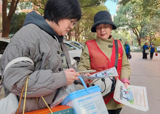 在垃圾分類宣傳現(xiàn)場,志愿者們身著紅馬甲,熱情地向居民發(fā)放宣傳冊,用通俗的語言細致講解“廚余垃圾如何精準投放”“廢舊電池等有害垃圾回收渠道”等常見問題。“阿姨,這是我們社區(qū)的垃圾分類指引手冊,里面有詳細的分類方法和投放時間。”“叔叔,您家里的過期藥品可以投放到社區(qū)指定的回收點,我們一起來保護環(huán)境。”親切的交流中,環(huán)保知識悄然傳遞,社區(qū)溫暖也在鄰里間流動。在鳳凰新天地生鮮菜場,志愿者們同樣干勁十足,走到市場一個個攤位前,協(xié)助整理攤位雜物、清掃地面垃圾,并引導市場周邊非機動車規(guī)范停放,讓購物環(huán)境更加整潔有序。