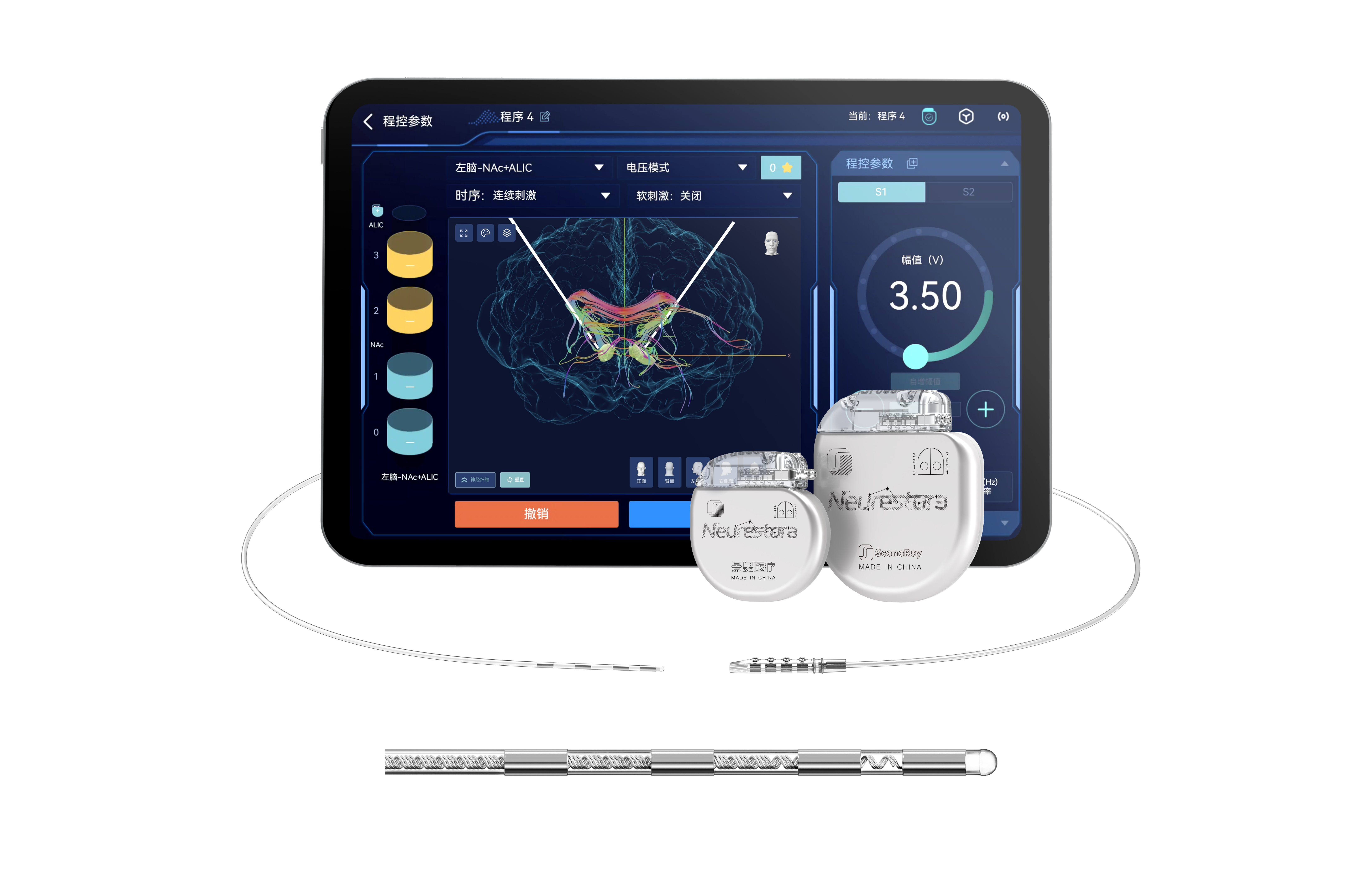 在此背景下,景昱醫(yī)療研發(fā)的植入式腦深部神經(jīng)刺激系統(tǒng)應(yīng)運(yùn)而生。腦機(jī)接口DBS技術(shù),是通過植入電極對(duì)腦內(nèi)特定區(qū)域施加電刺激,調(diào)控腦內(nèi)神經(jīng)環(huán)路功能的成熟安全技術(shù),已在臨床應(yīng)用近30年,廣泛用于治療難治性運(yùn)動(dòng)障礙、難治性精神障礙等疾病,可通過調(diào)節(jié)異常神經(jīng)活動(dòng),重塑大腦功能,幫助患者回歸正常生活。而景昱醫(yī)療的植入式腦深部神經(jīng)刺激系統(tǒng),由植入式腦深部神經(jīng)刺激器、電極導(dǎo)線與延伸導(dǎo)線聯(lián)合使用,創(chuàng)新采用雙靶點(diǎn)刺激技術(shù),對(duì)伏隔核和內(nèi)囊前肢進(jìn)行刺激,專門用于難治性中重度阿片類藥物成癮患者的防復(fù)發(fā)輔助治療,成功填補(bǔ)了物理性干預(yù)阿片類藥物成癮治療的技術(shù)空白。