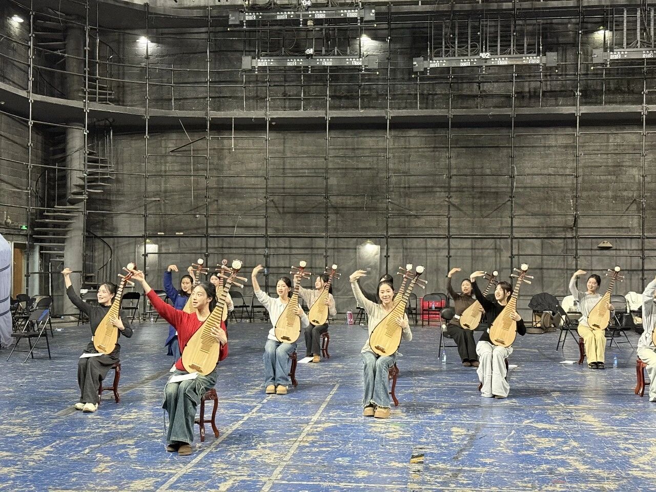自收到央視春晚邀請后,學校第一時間精挑專業功底扎實、舞臺表現力出眾的學子,組建師生團隊奔赴北京,開啟為期一個多月的高強度集中排練。排練期間,學生們一遍遍打磨細節,從唱腔韻律到儀態動作,每個環節都精益求精,盡管排練強度大、要求高,但是她們始終保持著飽滿的精神面貌,全身心投入排練中。