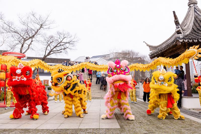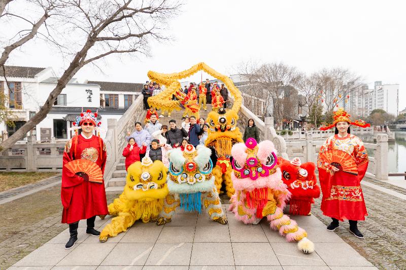 大年初一、初五,園區(qū)圓融時(shí)代廣場(chǎng)、斜塘老街、月光碼頭、李公堤四大商圈人聲鼎沸、鑼鼓喧天,由蘇州市舞龍燈非物質(zhì)文化遺產(chǎn)代表性傳承人蔣達(dá)夫帶領(lǐng)的百花洲龍燈隊(duì),為市民游客獻(xiàn)上了一場(chǎng)場(chǎng)氣勢(shì)恢宏的舞龍舞獅表演,用傳統(tǒng)民俗點(diǎn)燃新春喜悅。
