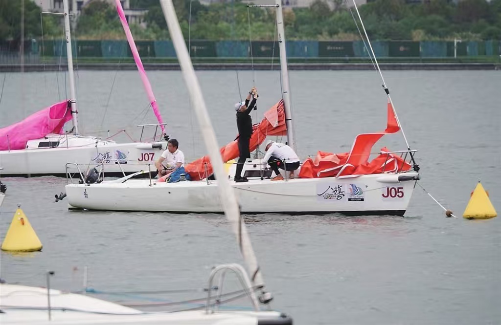 2025第十六屆城際內(nèi)湖杯金雞湖帆船賽今天開賽,昨日,參賽選手在進(jìn)行適應(yīng)性訓(xùn)練。