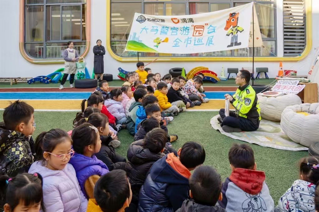 第十四個(gè)“全國交通安全日”到來之際,蘇州工業(yè)園區(qū)翡翠幼兒園里,一場別開生面的戶外教學(xué)活動(dòng)正在暖陽下、歡聲笑語中展開。孩子們圍坐在“大馬警官”身邊,聽他用溫和的聲音講述“生肖小鎮(zhèn)”里的交通安全故事。這一幕,不僅是2025年度“大馬警官游‘園’會(huì)”主題系列活動(dòng)的一幀畫面,更是近年來蘇州交警在低齡幼兒交通安全教育領(lǐng)域持續(xù)探索、系統(tǒng)推進(jìn)的生動(dòng)縮影。從2023年公安部道路交通安全研究中心在蘇州工業(yè)園區(qū)啟動(dòng)“低齡幼兒交通安全繪本教育”試點(diǎn),到如今“大馬警官”形象深入童心、走入家庭、影響社會(huì),這一路走來,不僅是一場交通安全教育方式的創(chuàng)新實(shí)踐,更是一次“校家警社”協(xié)同育人的深刻變革。