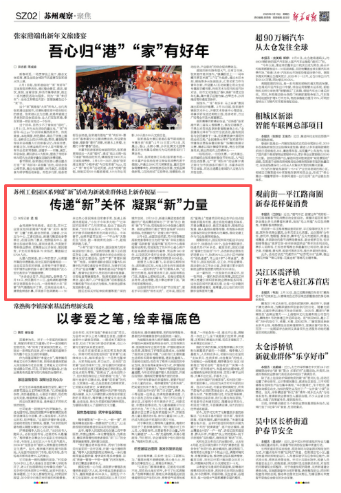 金雞湖畔年味漸濃。連日來,蘇州工業(yè)園區(qū)組織部圍繞“傳遞‘新’關(guān)懷凝聚‘新’力量”主題,聯(lián)合各街道、衛(wèi)健委、公共文化中心、工青婦條線、新建元集團黨委等單位,在園區(qū)熱門景點、黨群服務(wù)中心、星騎士加油站等點位,面向快遞員、外賣騎手等新就業(yè)群體,密集推出義診體檢、便民理發(fā)、子女托班等服務(wù)70余場次,覆蓋超過5700人次。