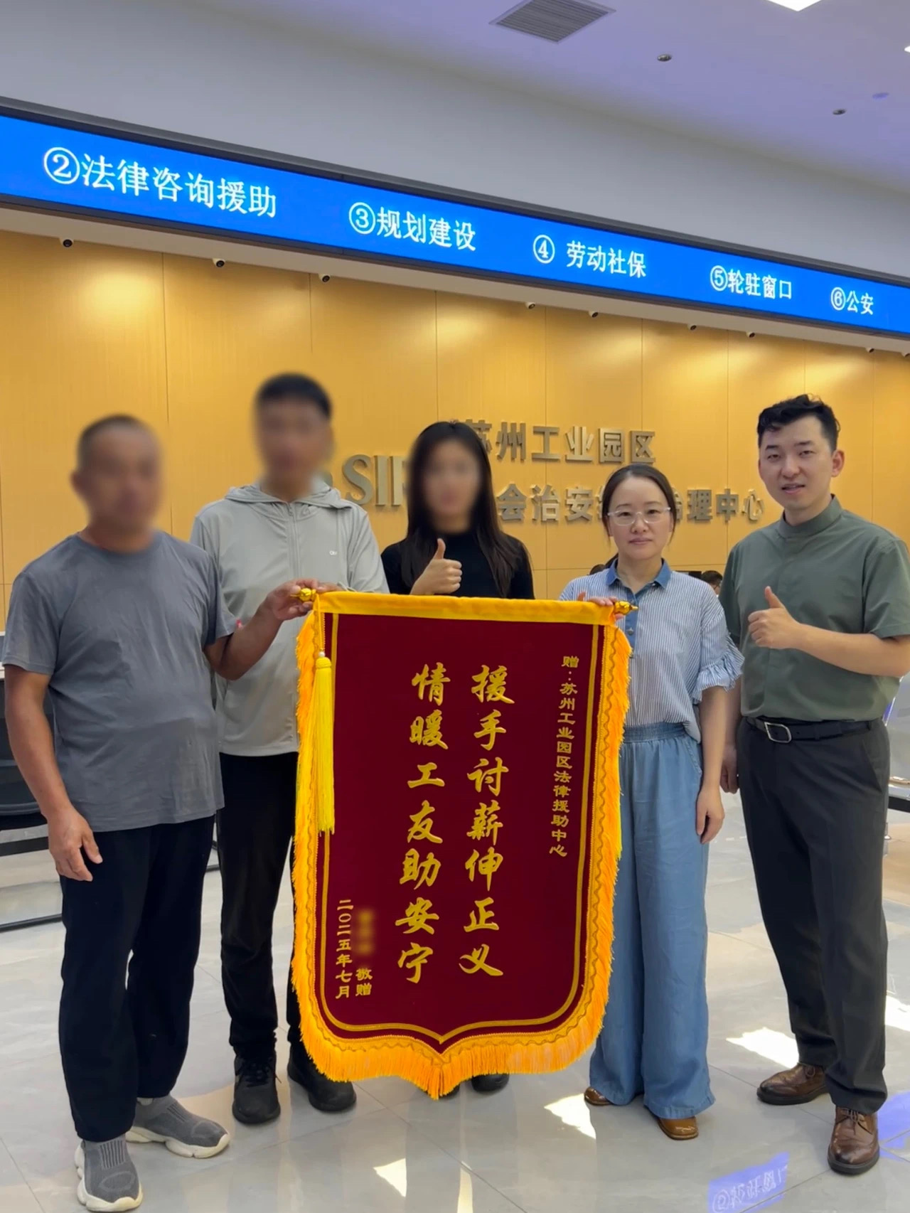 園區(qū)法律援助中心當(dāng)天即指派專業(yè)律師團(tuán)隊介入。考慮到受援人普遍年事已高、行動不便,承辦律師主動上門服務(wù),逐人梳理證據(jù)材料、核算欠薪金額,并協(xié)助推選訴訟代表人。同時,園區(qū)法律援助中心將案件線索移送檢察院,啟動民事支持起訴程序,并聯(lián)合信訪、人社、規(guī)建等部門開展調(diào)解工作。經(jīng)過多方共同努力,7月20日,用工單位全額支付23萬元欠薪,52名老人都當(dāng)場領(lǐng)到了被拖欠的勞務(wù)費(fèi)。事后,工人代表及家屬專程向園區(qū)法律援助中心贈送錦旗表達(dá)謝意。