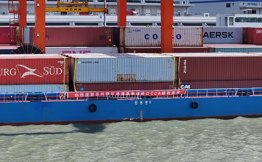 近日,伴隨著悠揚的汽笛聲,一艘裝載汽車后橋的集裝箱駁船緩緩駛入蘇州園區港碼頭,標志著蘇州園區港首票外貿集裝箱“CCA進口業務”正式落地運行,實現外貿貨物“既能出、又能進”的高效物流模式,為蘇州及周邊企業提供了更便捷的國際運輸新選擇。