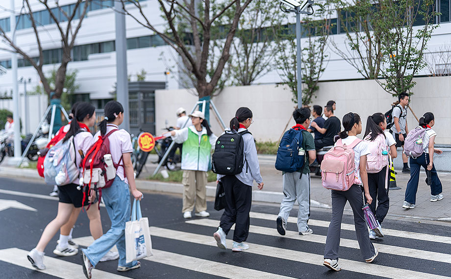 開學當天,園區交警在學校門口及周邊關鍵節點,增派警力值守,加強指揮疏導,確保高峰時段通行有序;學校老師、家長志愿者也與公安警力配合,組成的“護學崗”,成為上下學路上最堅實的守護者;新惠巴士則配套推出多條通學線路,以安全、高效的運行,為學生提供從“家門口”到“校門口”的點對點服務。