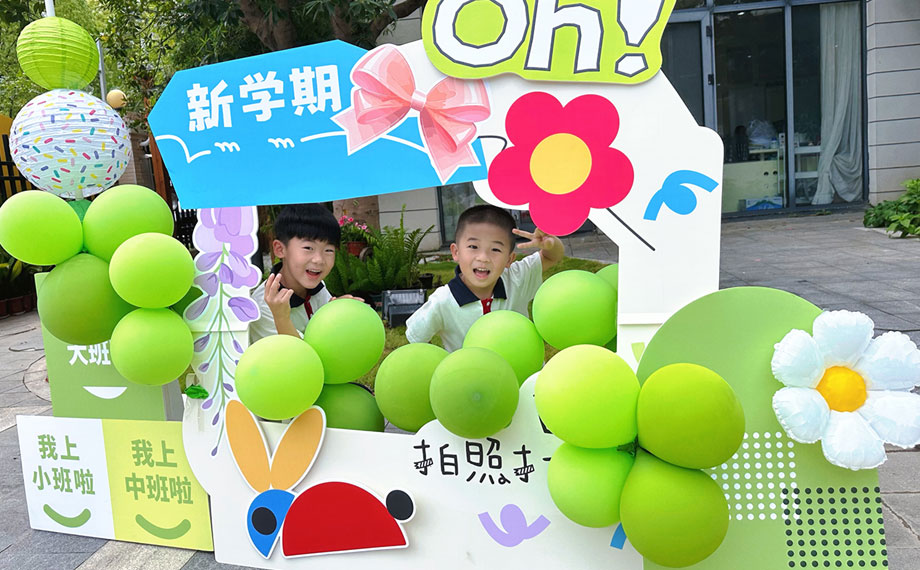 色彩斑斕的氣球,裝點溫馨萌趣的校園,滿載童心童趣。“一畫一印啟童心,一游一趣向未來”等祝福則飽含成長的期待。