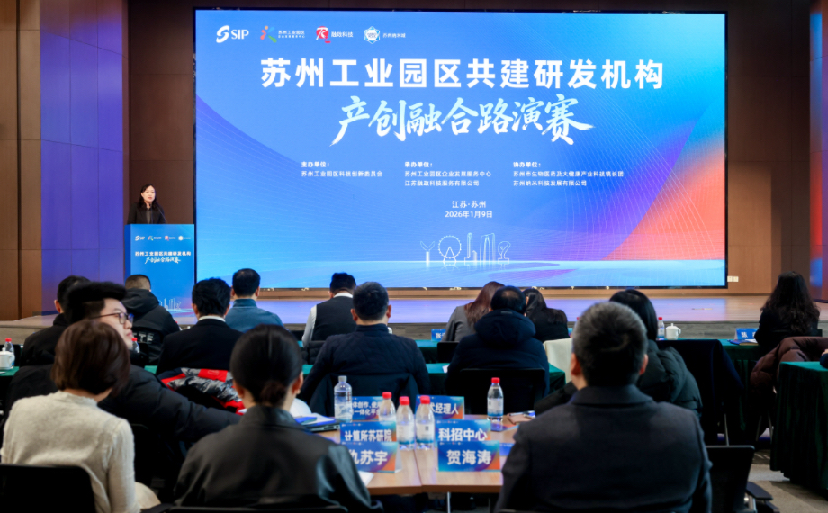 1月9日,蘇州工業園區共建研發機構產創融合路演賽在蘇州納米城成功舉辦,來自15家機構的24個優質創新項目同臺競技展成果,園區共建研發機構產創融合共同體同步成立。此次活動以產創融合為核心紐帶,精準推動科技創新與產業創新深度耦合、雙向賦能,加速人才、技術、資本等創新要素集聚,為園區高質量發展注入強勁動能。