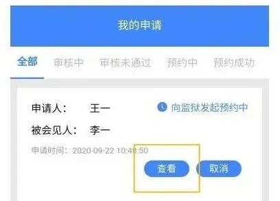 會見申請?zhí)峤缓?,請耐心等待。后臺工作人員將對會見人資格進行初審,初審?fù)ㄟ^后,向相關(guān)監(jiān)獄發(fā)起預(yù)約,監(jiān)獄將按照相關(guān)會見規(guī)定進行再次審核。