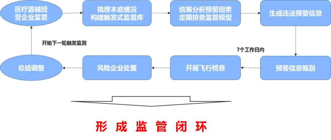 根據(jù)產(chǎn)業(yè)發(fā)展和監(jiān)管實(shí)際,按照“風(fēng)險(xiǎn)導(dǎo)向”原則,將觸發(fā)式監(jiān)管對(duì)象定位為主體數(shù)量多、監(jiān)管任務(wù)重的醫(yī)療器械經(jīng)營(yíng)企業(yè);重點(diǎn)聚焦年內(nèi)新備案的第二類(lèi)醫(yī)療器械經(jīng)營(yíng)企業(yè),設(shè)置預(yù)警因素、建立監(jiān)管流程、明確處置方式,通過(guò)觸發(fā)式監(jiān)管降低風(fēng)險(xiǎn)隱患,引導(dǎo)企業(yè)合法合規(guī)經(jīng)營(yíng)。