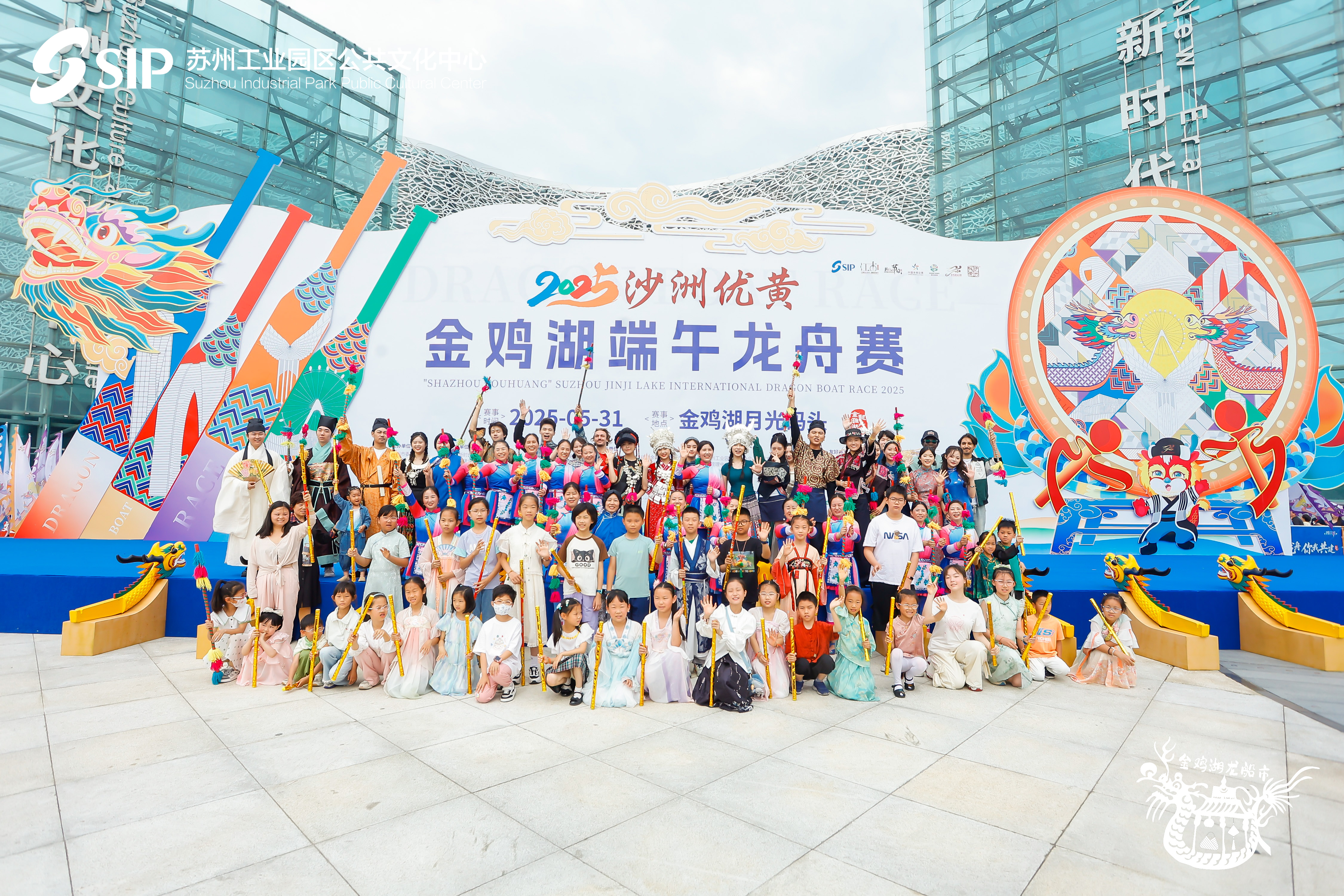 The “Shazhou Youhuang” 2025 (15th) Jinji Lake Dragon Boat Race kicked off at Moon Harbor, SIP on May 31. The event was sponsored by the Publicity Department of the CPC Suzhou Committee, Suzhou Sports Bureau and SIP Administrative Committee, and organized by SIP-based New Era Group and Sungent Group.