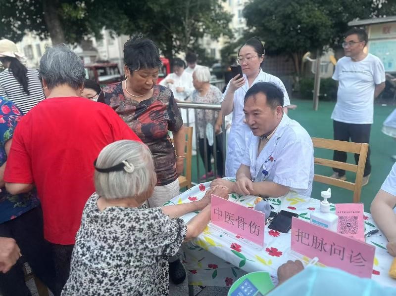 The hospital also held an event at a square in Lianfeng Community to provide free TCM diagnosis and treatment for local residents. The medics from the hospital also taught the participants to practice Ba Duan Jin, a set of exercises that offer health benefits by coordinating body movements with breathing and a relaxed mind, and gave them healthy tea and massage tools as gifts.