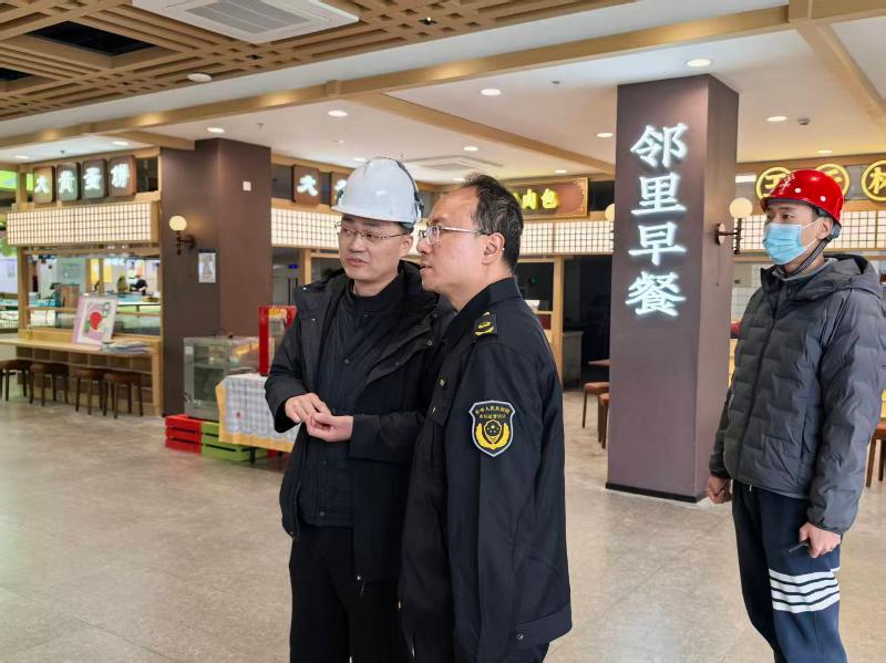 一站式排查消除隱患,為開業守安全。針對商業體特種設備多、食品經營主體集中特點,主動前移安全關口,在開業前全面開展隱患排查。核查電梯、自動扶梯特種設備規情況,組織商戶自查餐飲及食品經營單位風險點,提示原料采購查驗、加工過程控制、從業人員健康管理等關鍵環節要求,檢查電子秤等計量器具并督促按期檢定,全方位筑牢開業安全防線。