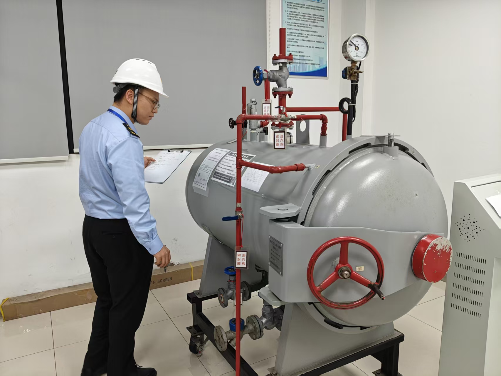 競賽采用“理論+實(shí)操”雙維度考核模式,全方位檢驗(yàn)監(jiān)察人員專業(yè)能力。理論環(huán)節(jié),重點(diǎn)考察選手對《中華人民共和國特種設(shè)備安全法》《特種設(shè)備安全監(jiān)督檢查辦法》《固定式壓力容器安全技術(shù)監(jiān)察規(guī)程》等專業(yè)內(nèi)容的掌握程度,夯實(shí)“依法監(jiān)察”理論根基;實(shí)操環(huán)節(jié),選手需在60分鐘內(nèi)完成兩類設(shè)備的本體檢查與資料核查,精準(zhǔn)識別設(shè)備運(yùn)行參數(shù)異常、安全附件失效、技術(shù)檔案缺失等問題,考驗(yàn)“精準(zhǔn)發(fā)現(xiàn)、高效處置”的實(shí)戰(zhàn)本領(lǐng)。經(jīng)過激烈角逐,來自高貿(mào)區(qū)分局的譚嘉晗等9名選手脫穎而出,分獲一二三等獎。?