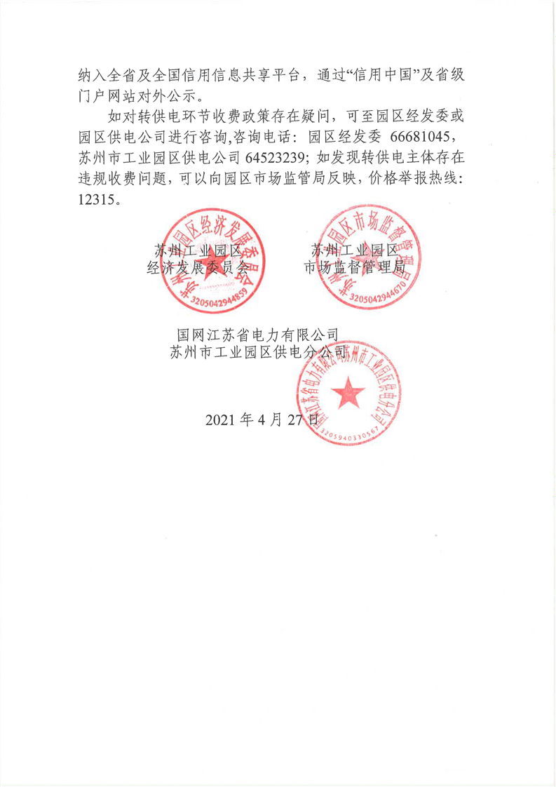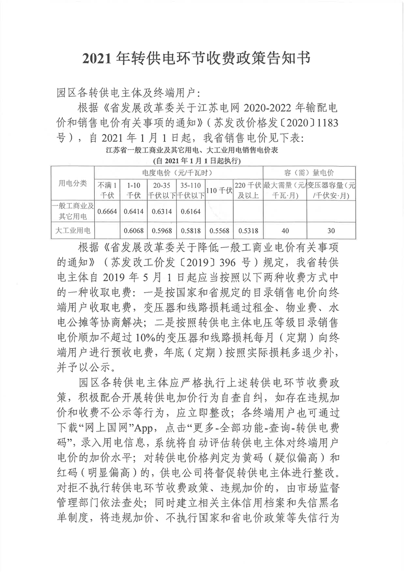 2021年轉供電環節收費政策告知書