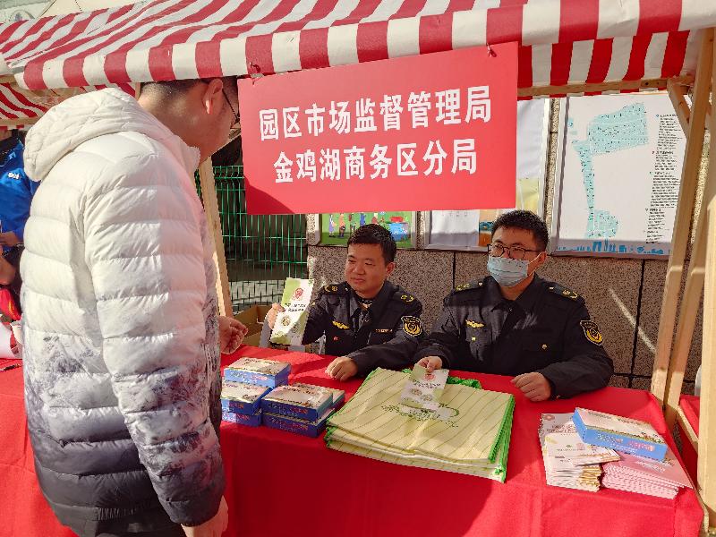 活動現場,蘇州工業園區市場監督管理局金雞湖商務區分局通過在活動現場設置咨詢臺、懸掛宣傳條幅、擺放宣傳展板、樣品展示介紹,以及現場咨詢服務、發放宣傳資料等形式集中開展了宣傳活動。活動當天,共發放宣傳材料500余份、宣傳手冊200余冊、宣傳手提袋100余個、接受現場咨詢超200人次。