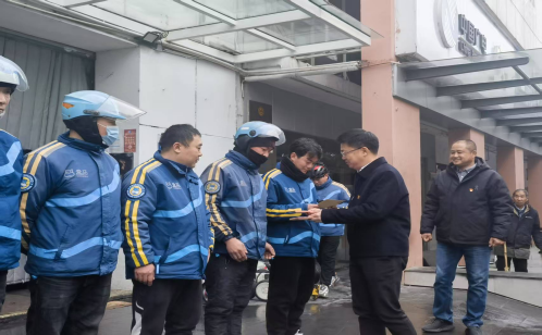 為積極發(fā)揮黨組織把方向、聚人心、促發(fā)展作用,不斷提升外賣行業(yè)群體獲得感、幸福感、歸屬感,近日,蘇州工業(yè)園區(qū)市場監(jiān)督管理局?jǐn)y手外賣行業(yè)黨委、外賣行業(yè)聯(lián)合工會開展2025年“暖新同行”春節(jié)慰問活動,為在嚴(yán)寒中奔波的外賣配送員送去溫暖與關(guān)懷。