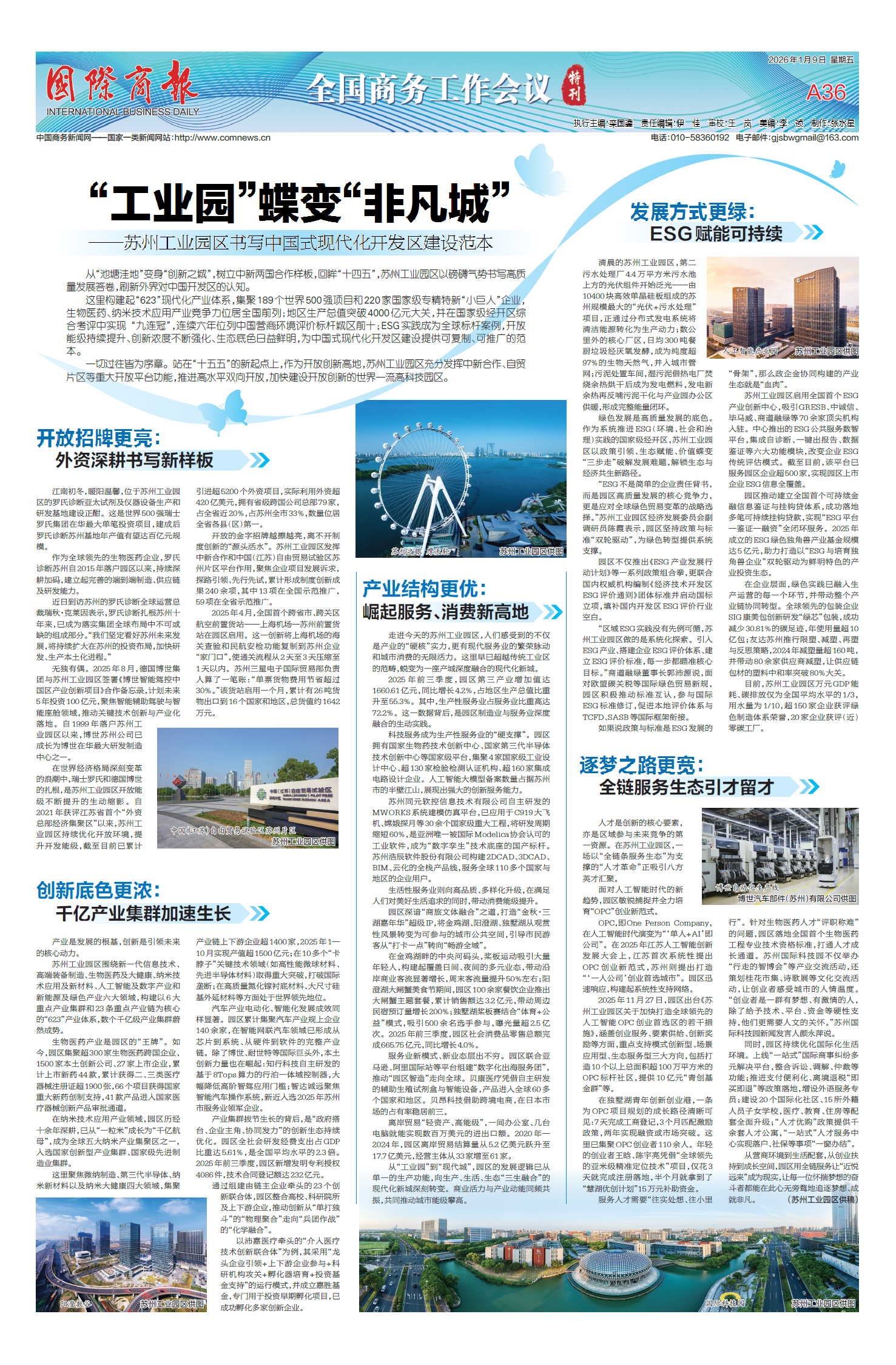 綠色發展是高質量發展的底色。作為系統推進ESG(環境、社會和治理)實踐的國家級經開區,蘇州工業園區以政策引領、生態賦能、價值蝶變“三步走”破解發展難題,解鎖生態與經濟共生新路徑。
