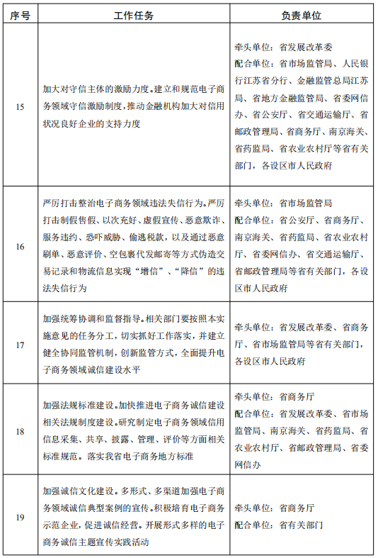 (一)加強統籌協調和監督指導。網信、發展改革、工業和信息化、市場監管、商務、人民銀行、公安、交通運輸、海關、藥品監管、郵政、通信、稅務等相關部門,要按照本實施意見的任務分工,切實抓好工作落實,并建立健全協同監管機制,創新監管方式,全面提升電子商務領域誠信建設水平。