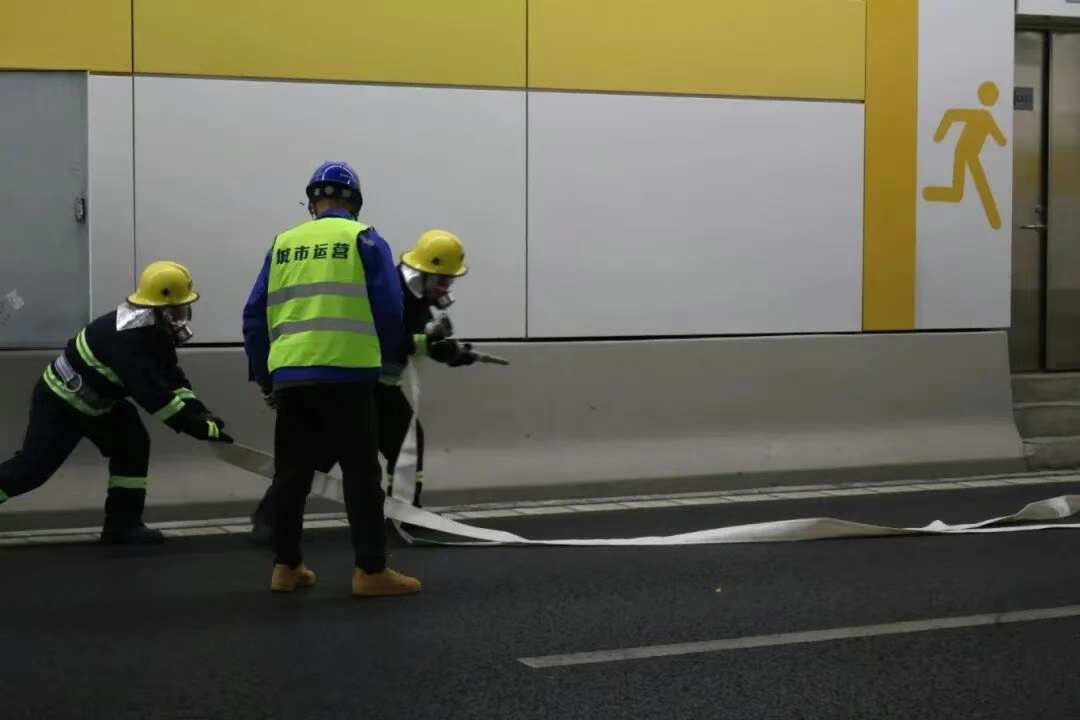 市政服務(wù)集團(tuán)隧道管理中心通過監(jiān)控系統(tǒng)確認(rèn)險情后,立即啟動應(yīng)急機制,同步完成火警上報、力量集結(jié)和警示廣播。應(yīng)急保障隊伍60余人聞令而動,兵分三路展開救援:疏散組引導(dǎo)被困人員沿應(yīng)急通道安全撤離;引導(dǎo)組在隧道出入口實施交通疏導(dǎo),開辟救援生命通道;救援組開展前期消防處置,有效控制火勢蔓延。金雞湖消防大隊接警后迅速抵達(dá)現(xiàn)場,專業(yè)開展水源接管、火場降溫與明火撲救作業(yè)。交警部門同步實施隧道內(nèi)外交通管制,保障救援通道高效暢通。